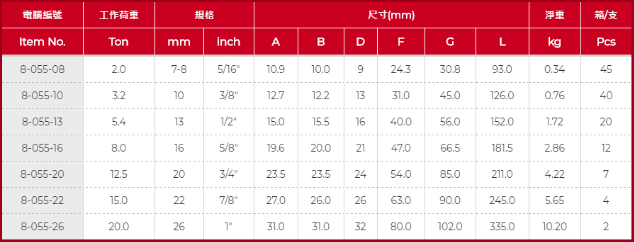 產(chǎn)品特性:適用於80級合金鋼鏈及鋼絲繩鉤子旁邊設計有個(gè)牛角可加強荷重,並且可讓鏈條平穩放入應用縮短或鉤住長(cháng)鏈條通過(guò)狹窄間隙,卡槽達到和鏈條咬合防止滑落插銷(xiāo)開(kāi)口的設計確保正確鏈條尺寸的使用,省去連接鏈條時(shí)活動(dòng)鏈接的使用產(chǎn)品上面印製吊裝載荷量,PASAK和WLL的浮雕標誌材質(zhì)